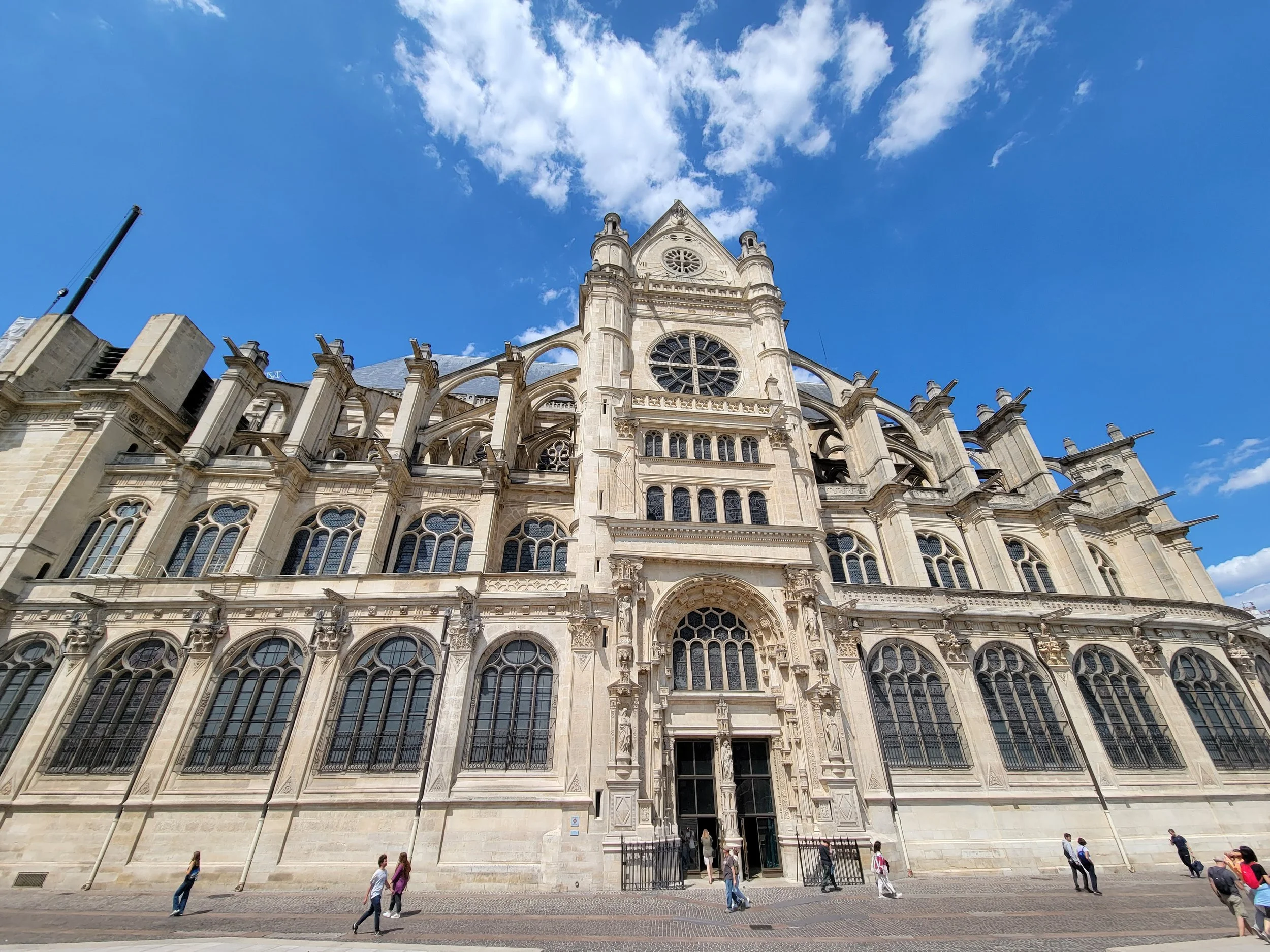 From stripe-land, we headed for Stohrer After two hundred years, it’s still there, open and still selling babas. Score! After purchasing an obnoxious amounts of desserts, we realized that Stohrer doesn’t have any tables, so we were obliged to wander Paris streets searching for a place to sit and enjoy our haul. While Notre Dame is under repair, the shadow of the imposing Saint-Eustache cathedral would have to do.